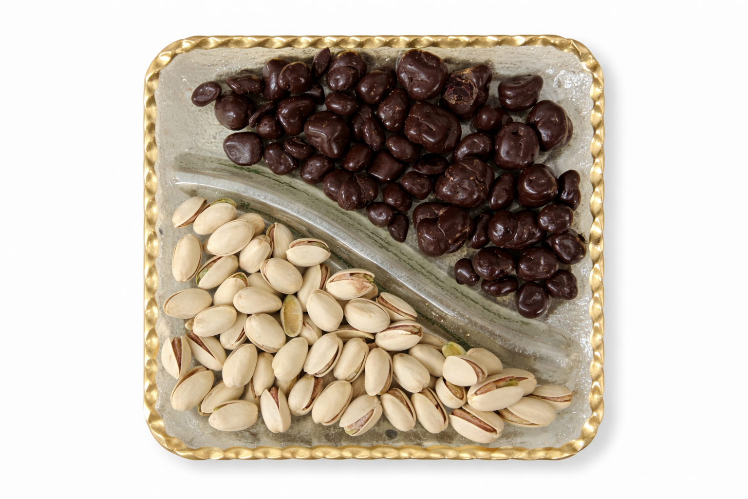 Filled 2 Section Glass Tray with Gold RIm