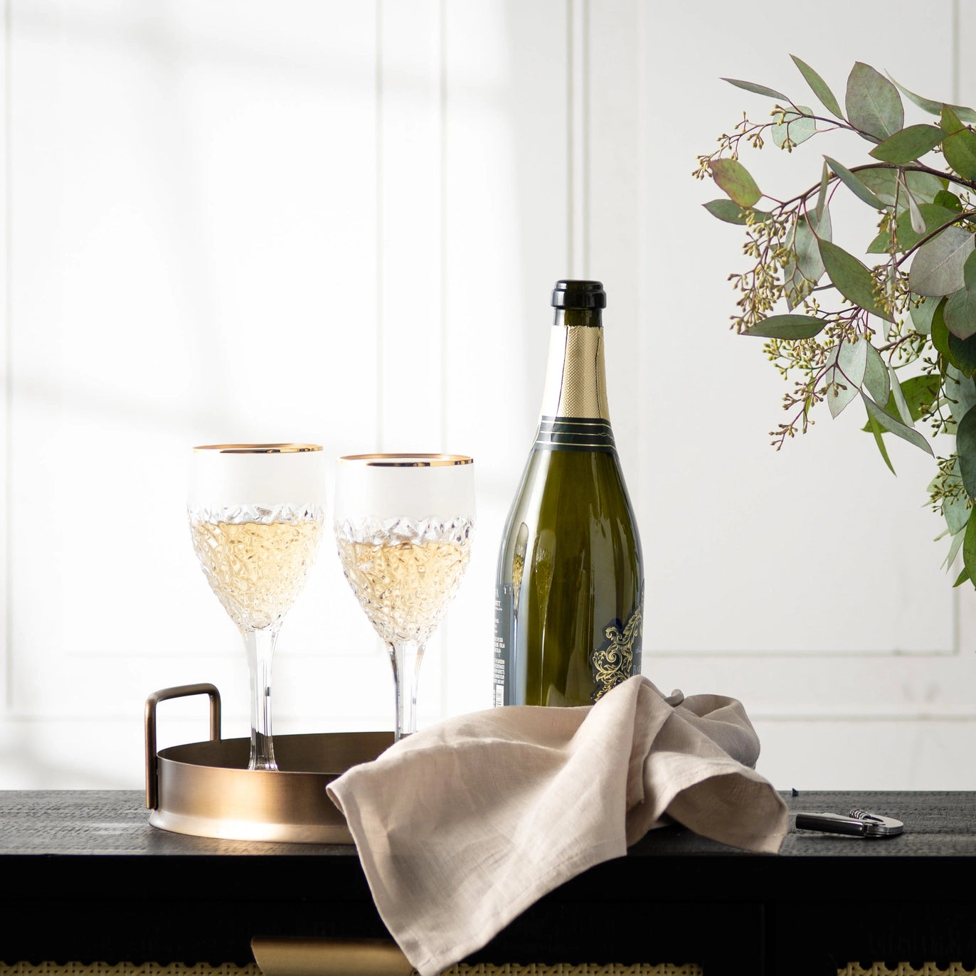 Nicolette White Wine Glass with Gold And Matt Spray