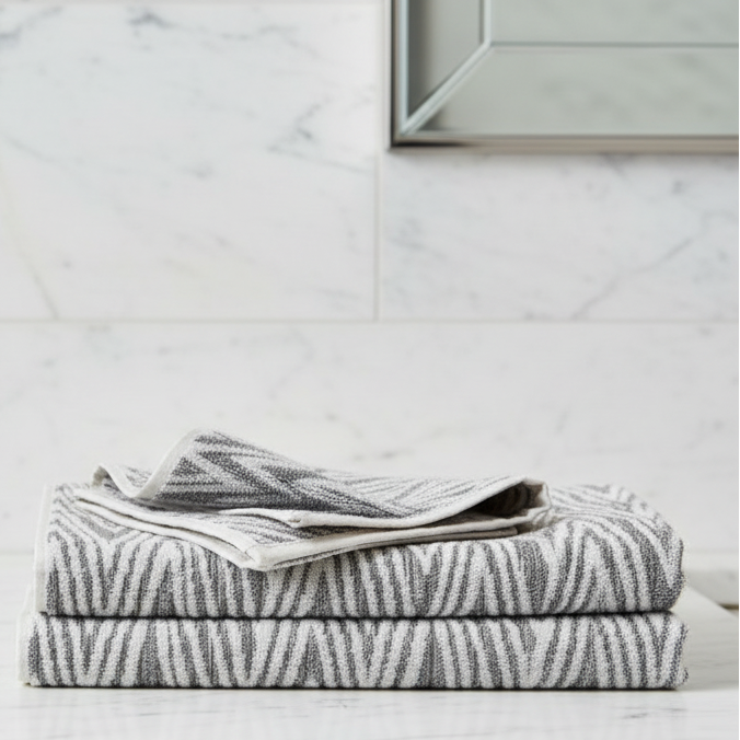Bring warmth and style to your space with this multi-toned grey hand towel versatile enough to complement any décor.
