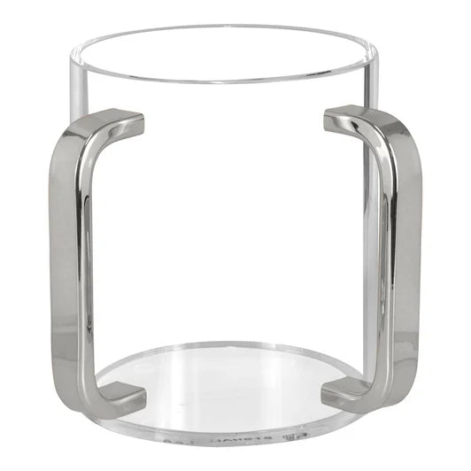 This elegant wash cup features clear lucite construction paired with sleek mirrored handles, combining modern style with practical use. Its sturdy design makes it perfect for daily routines or decorative display.