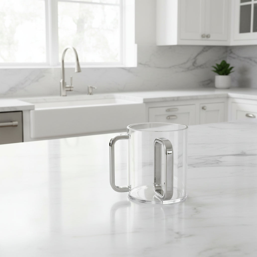 Lucite Wash Cup with Mirrored Silver Handles