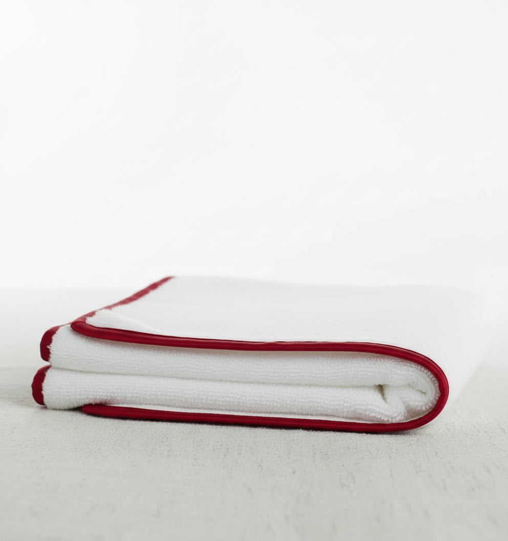 Satin Luxe White with Red Hand Towel