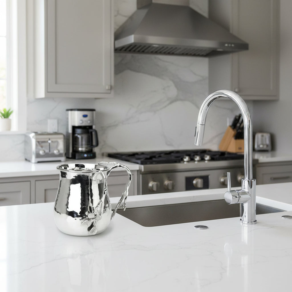 Nickel Wash Cup with Leaf Design