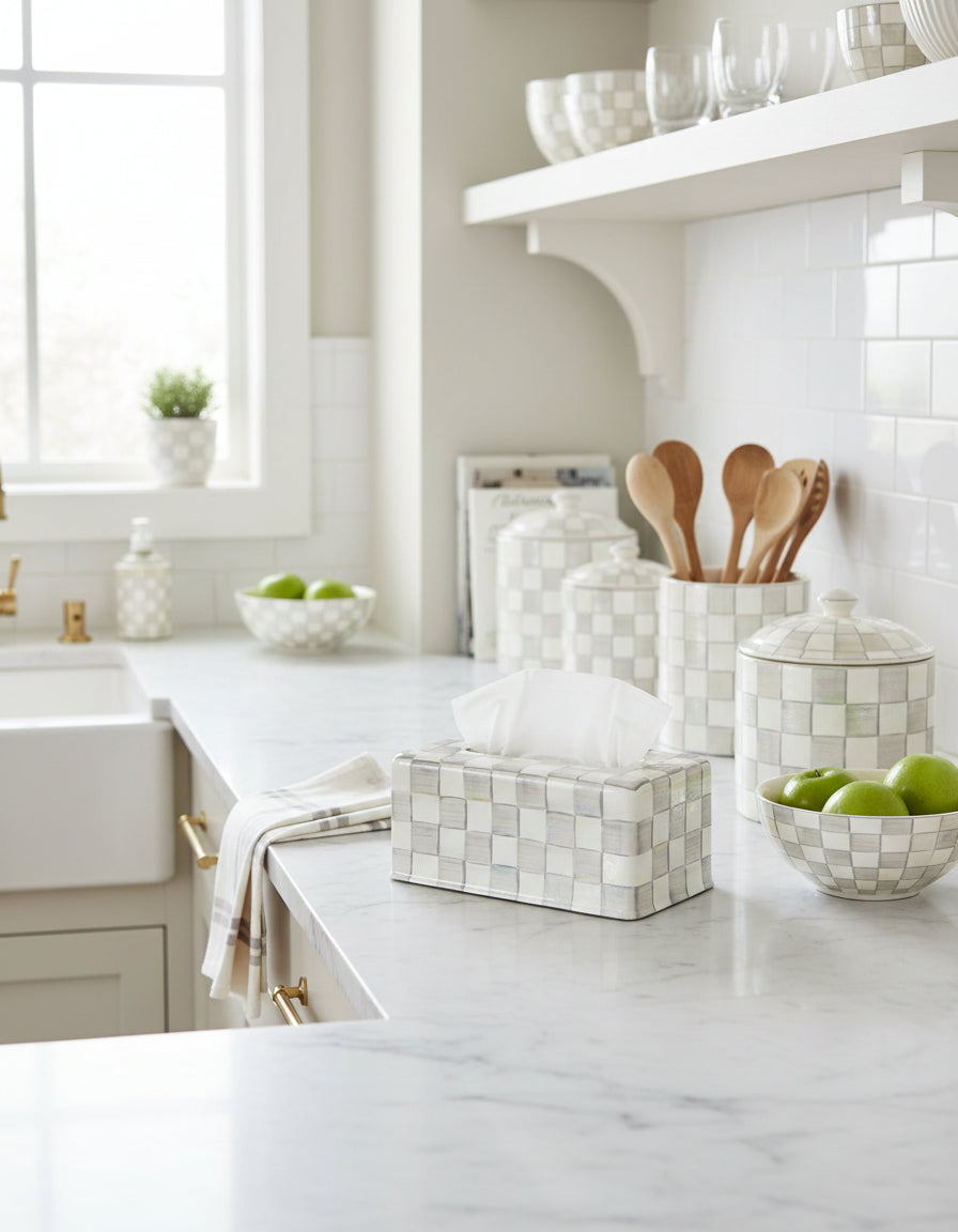 Mackenzie - Childs Sterling Check Enamel Standard Tissue Box Cover