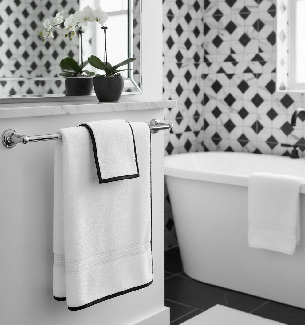 MacKenzie - Childs Black & White Tartan Hand Towel