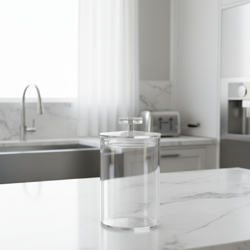 Lucite Cookie Jar with Silver and Glass Handle Large