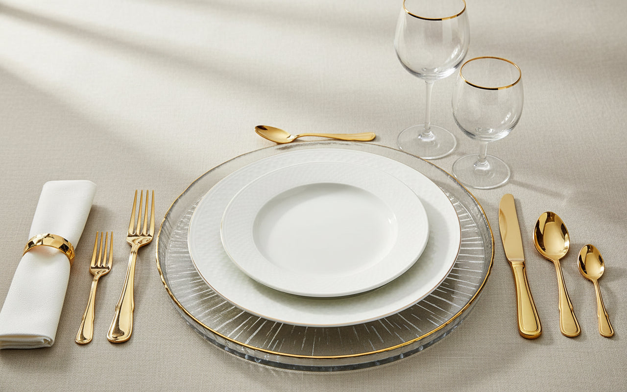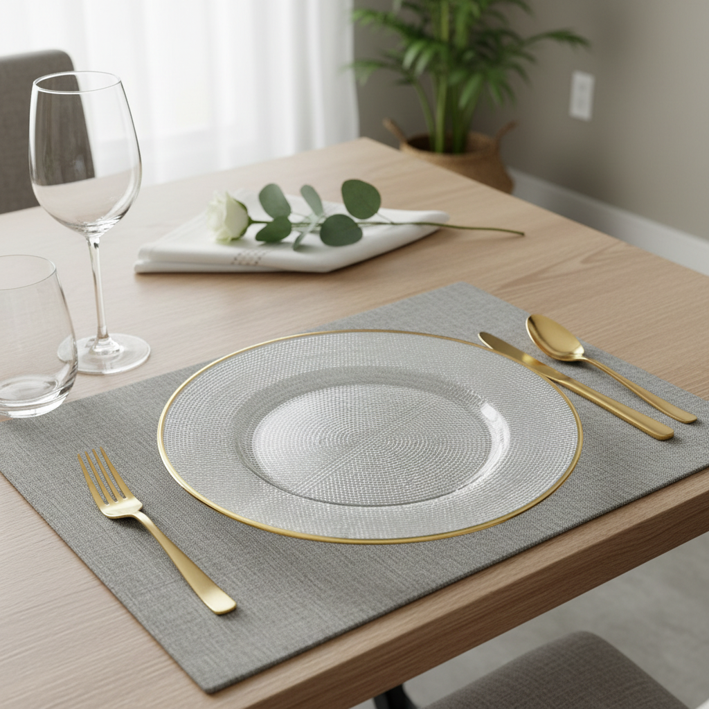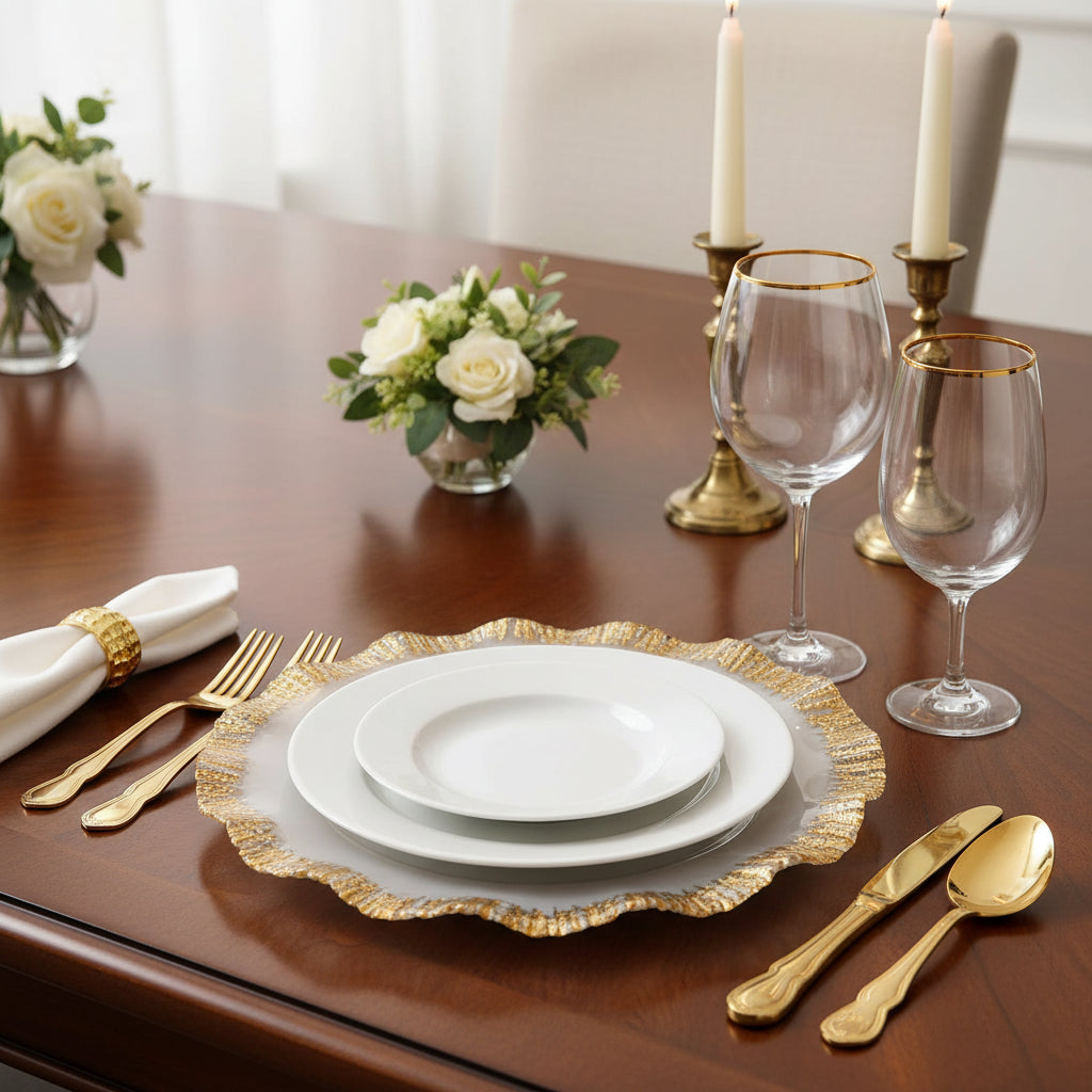Glass Chargers with Gold Scalloped Edge Set of 4