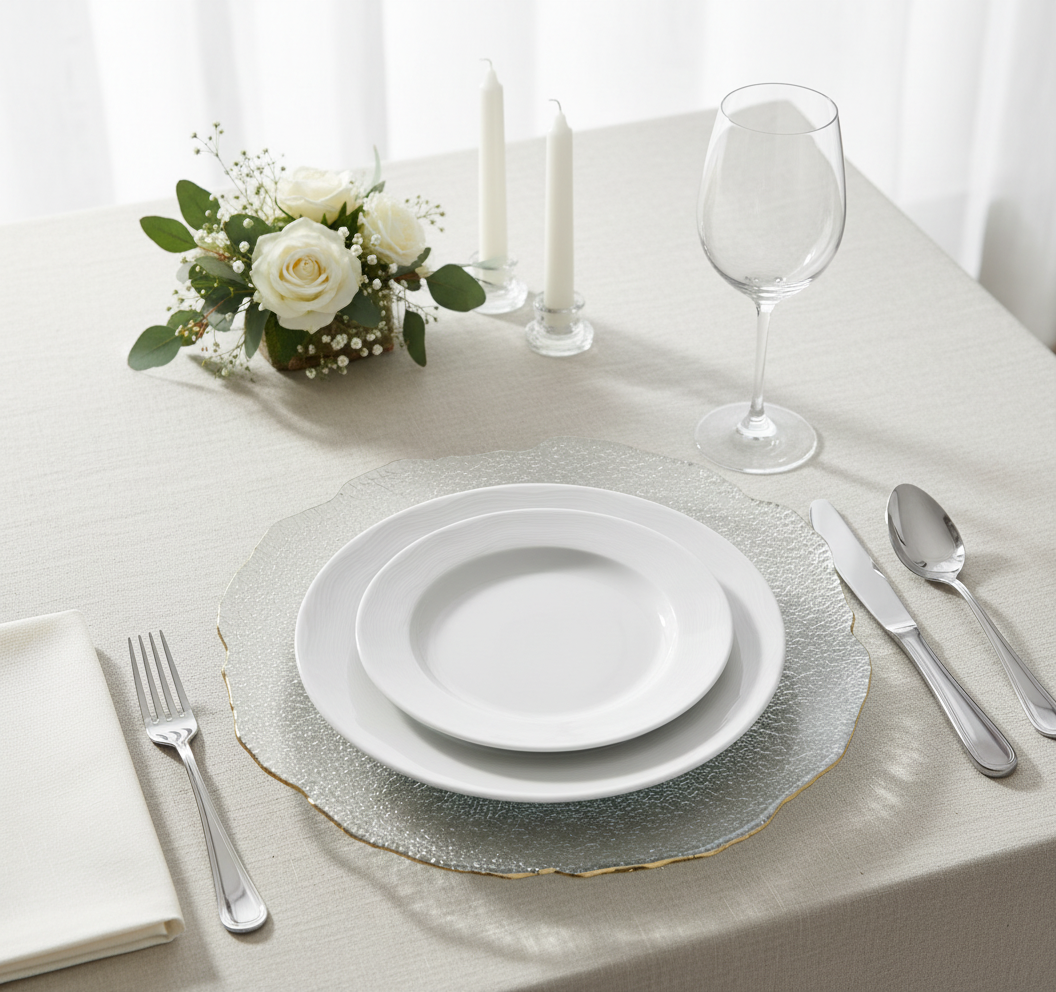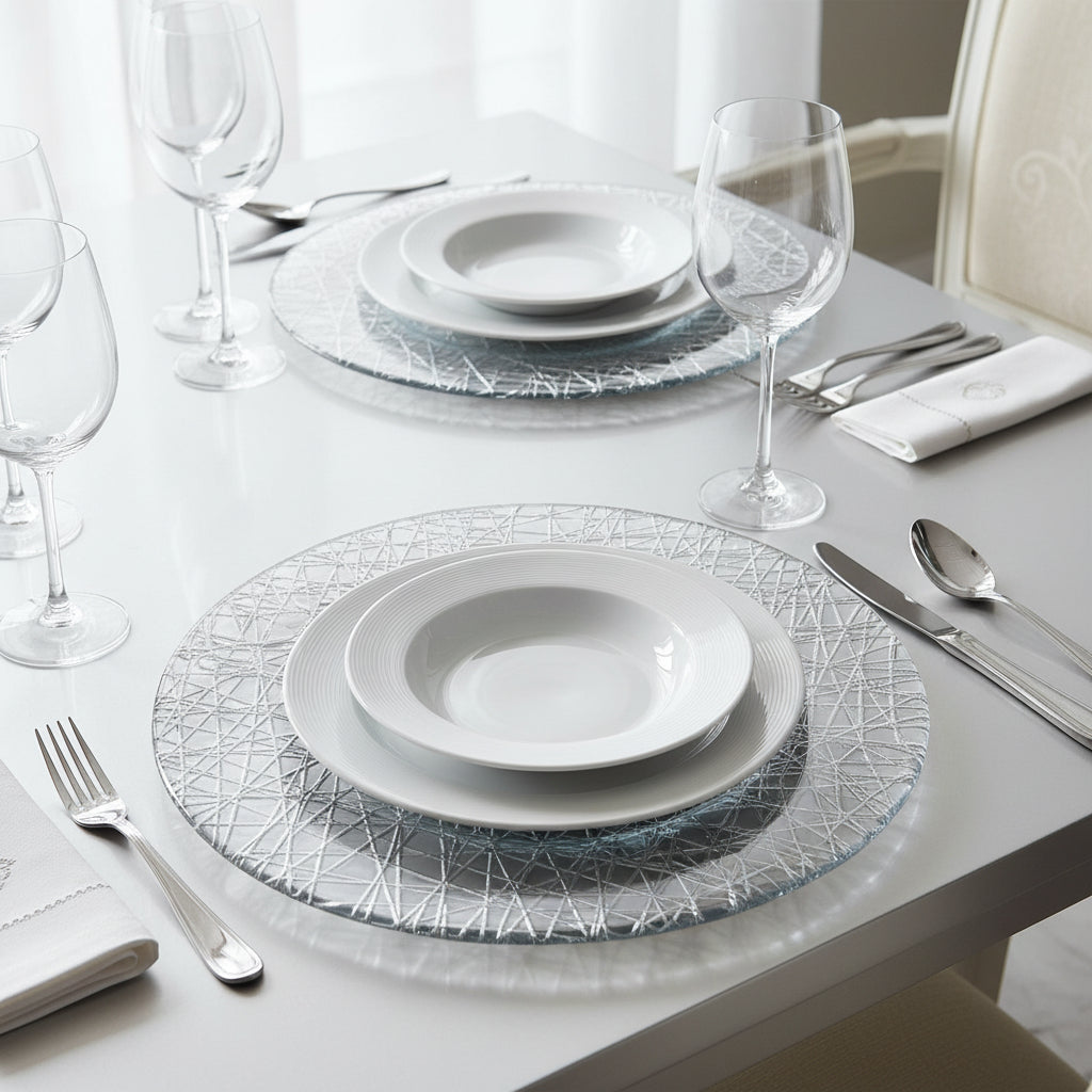 Glass Chargers with Silver Scalloped Edge Set of 4