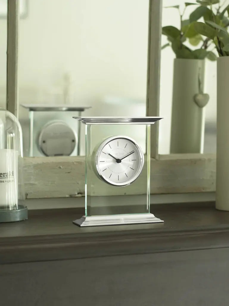 Flat Top Silver Mantel Clock