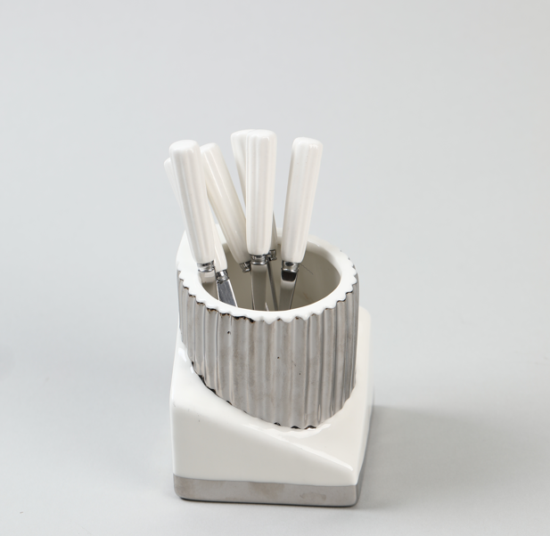 Classic Cutlery Holder with Salt & Bencher Set Silver