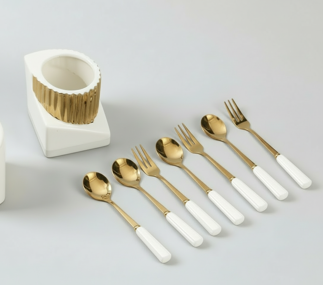 Gold Swan Dessert Spoon Holder with 6 Spoons