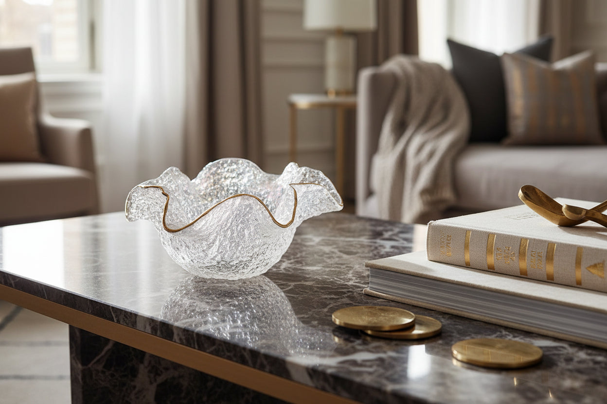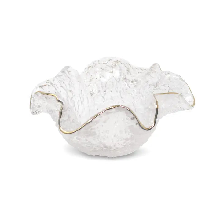 Hammered Glass Ruffled Bowl with Gold Trim Small