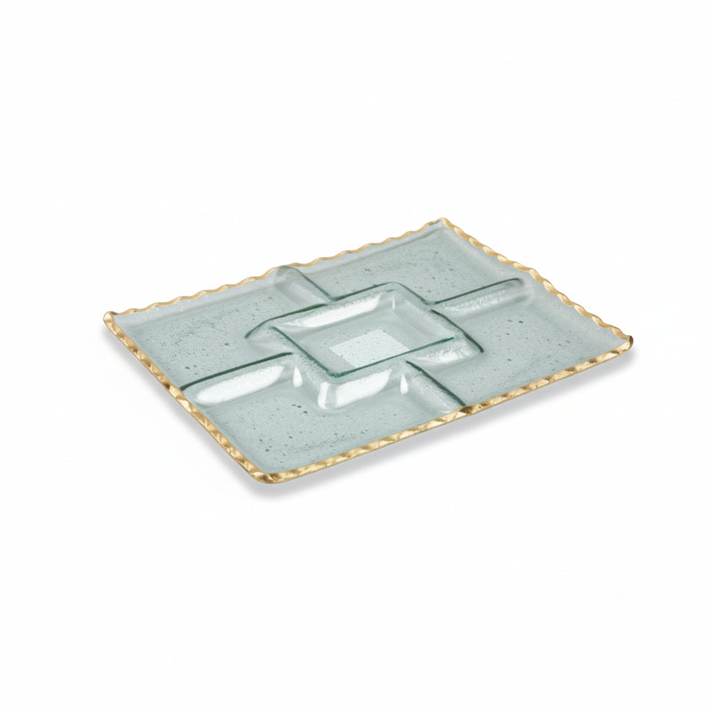 Clear Glass Rectangular Tray with 3 Square G