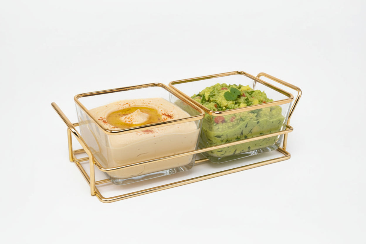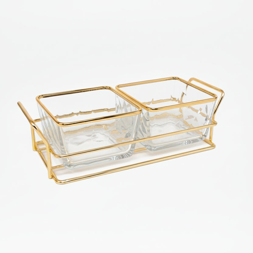 Gold Wire Rack with 2 Glass Dip Dish