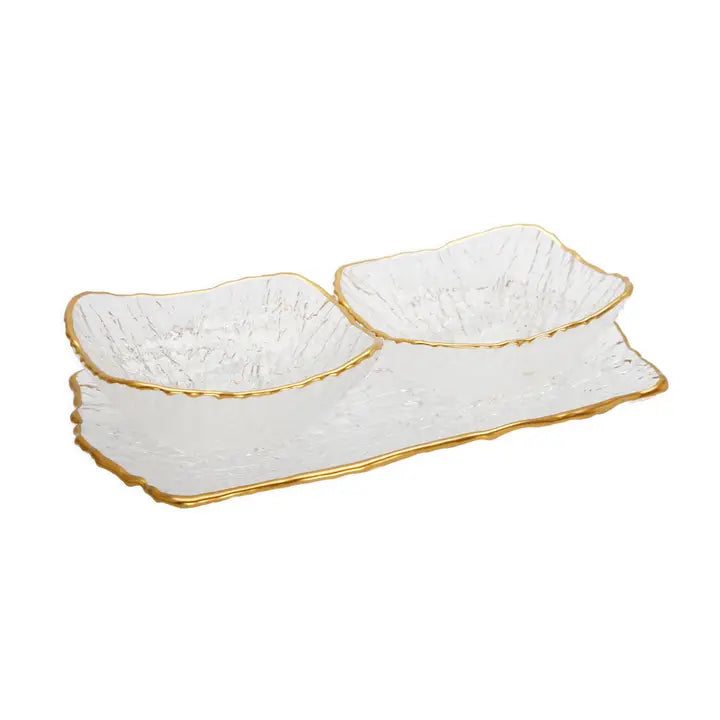 Glass 2 Bowl Relish Dish with Gold Trim