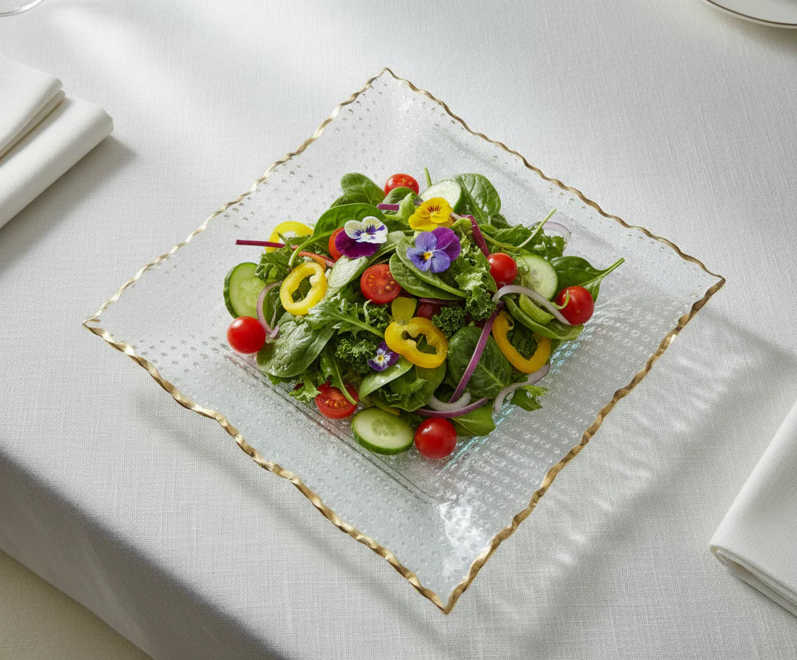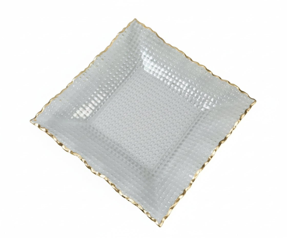 Square Salad Bowl with Gold Rim