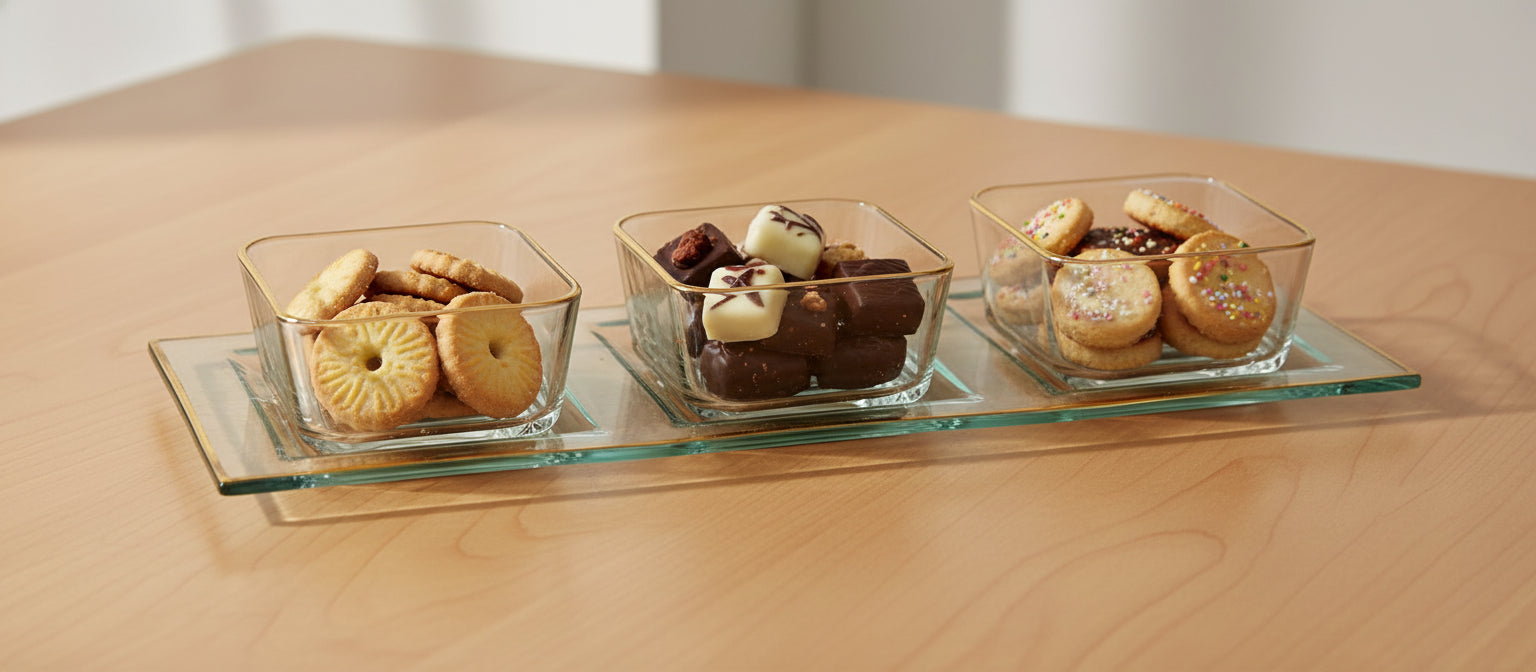 Upgrade your dining experience with this glass 3-bowl relish dish. Made of high-quality glass, this dish features a stunning gold rim that adds an elegant touch to any occasion. Perfect for serving a variety of dips and sauces, this dish is a must-have for any host or hostess.