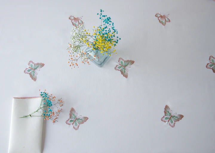Butterfly Pink and Green Tablecloth