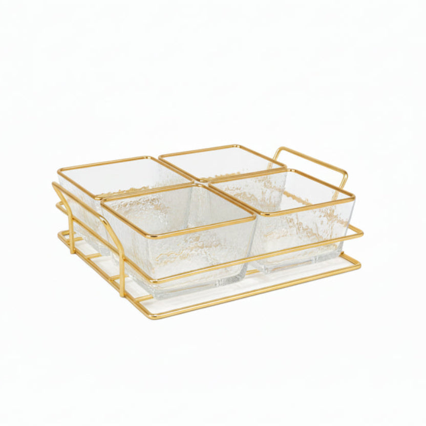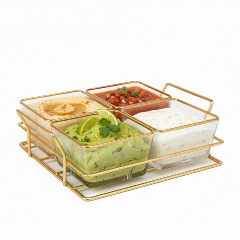 Gold Wire Rack with 4 Glass Dip Dish
