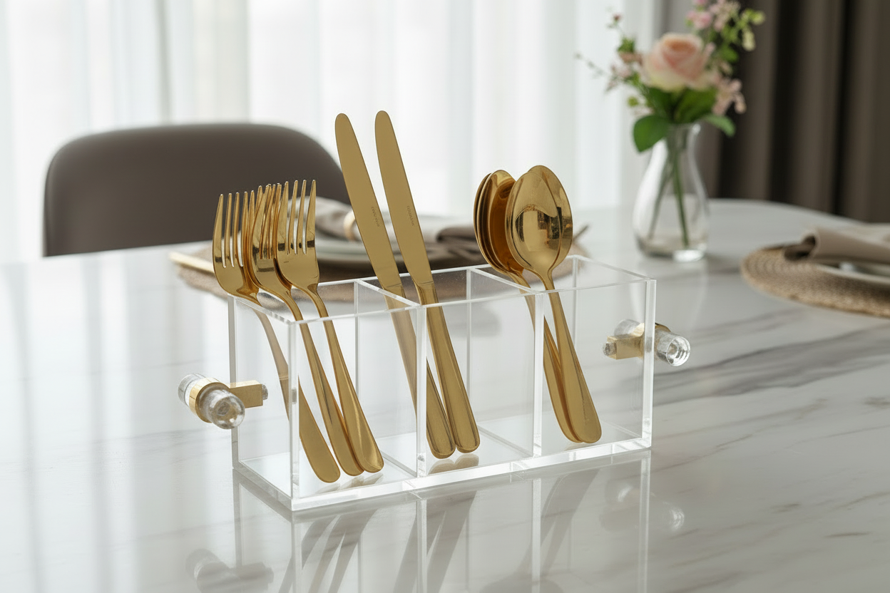 Acrylic Cutlery Caddy with Gold Handle