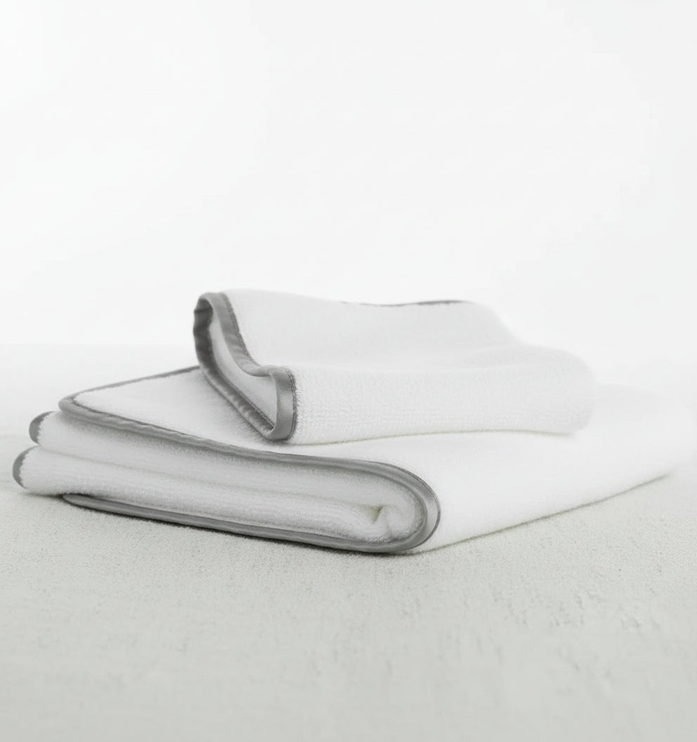 Satin Luxe White with Grey Fingertip Towel