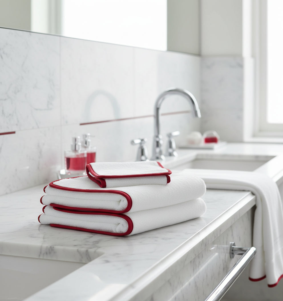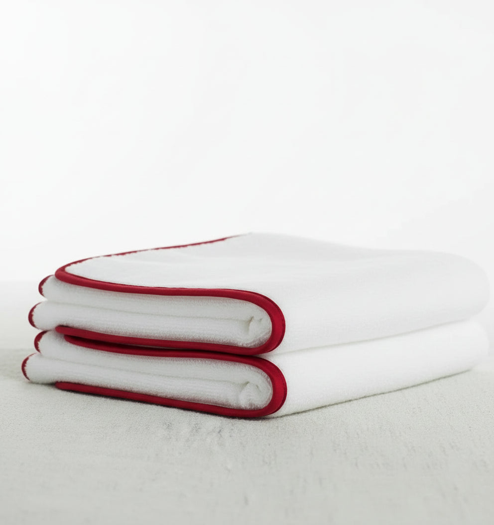 Satin Luxe White with Red Fingertip Towel