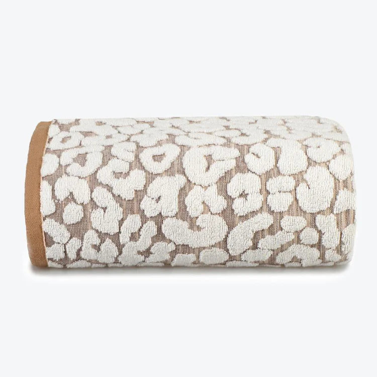 This textured, animal print towel is complete with a grey or beige trim, adding the final flourish to a beautifully soft and absorbent towel.