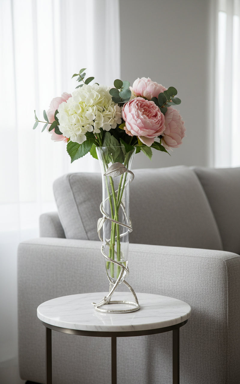Glass Vase With Removable Silver Nickel Leaf Design Base