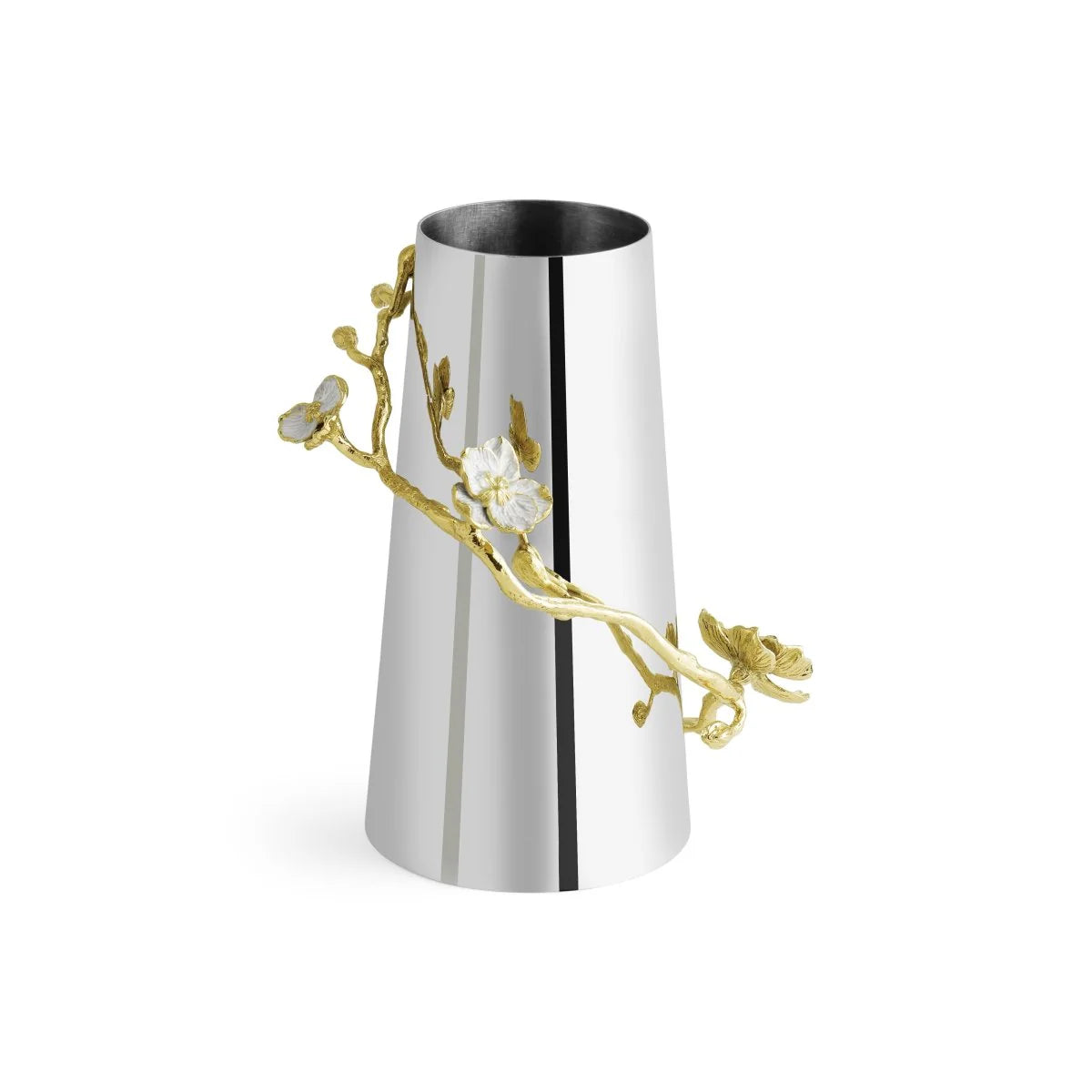 The Orchid Vase is a stunning handcrafted work of art, crafted from natural brass and stainless steel, with delicate white enamel orchids. Celebrating purity and grace, its elegant design balances vibrant detail with timeless luxury. Available in two sizes, this exquisite vase elevates any space with ethereal beauty and artisanal refinement.