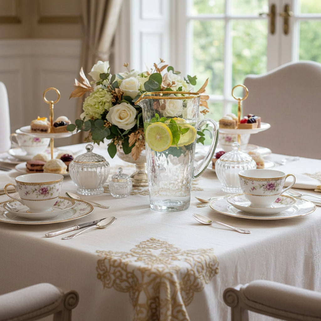 Pebble Glass Pitcher with Gold Handle