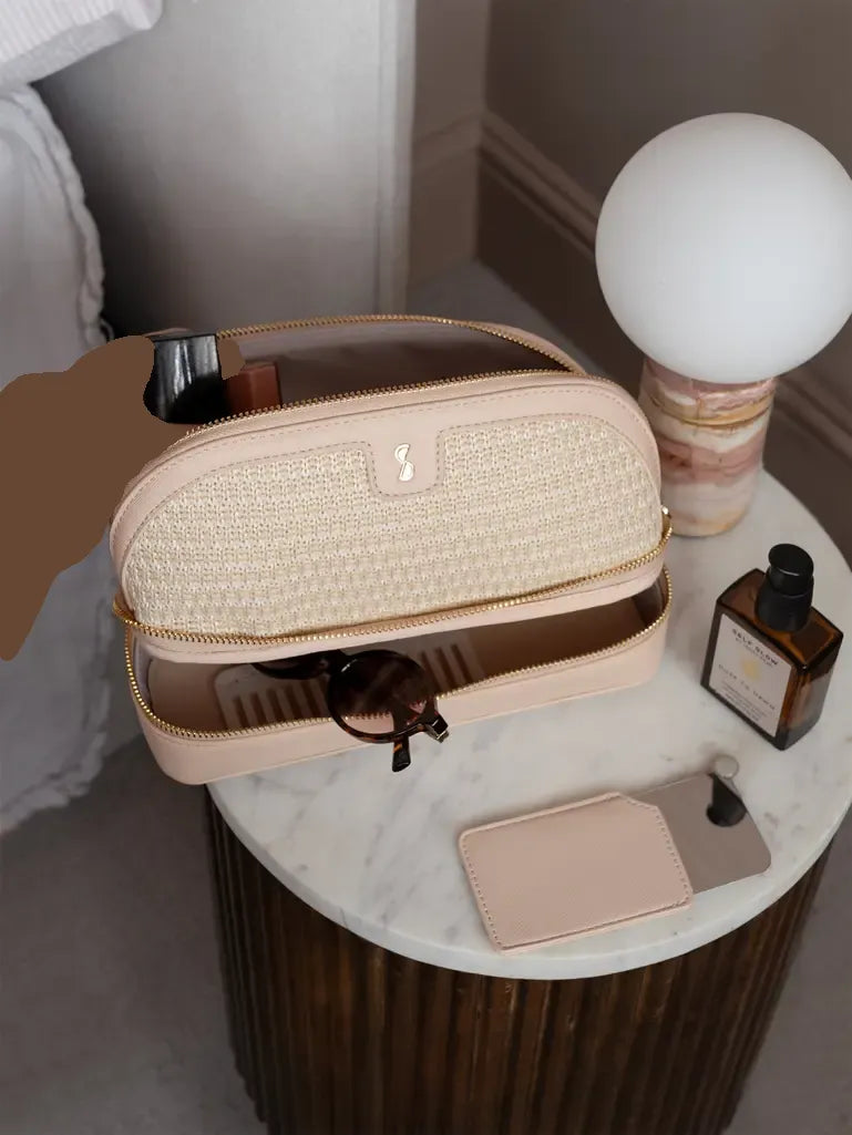 Blush Raffia Cosmetic Bag