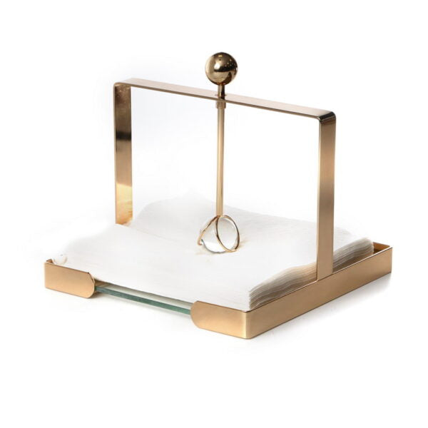 Clear Glass Gold Napkin Holder with Handle & Crystal Ball