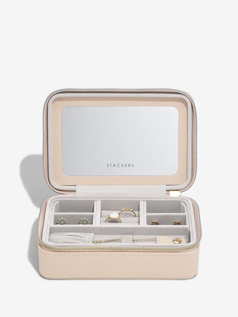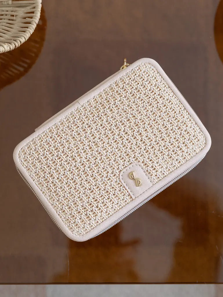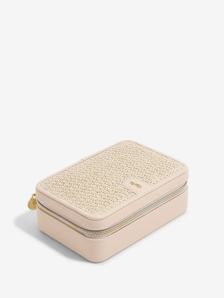 Luxury Travel Jewellery Box Blush Pink Raffia