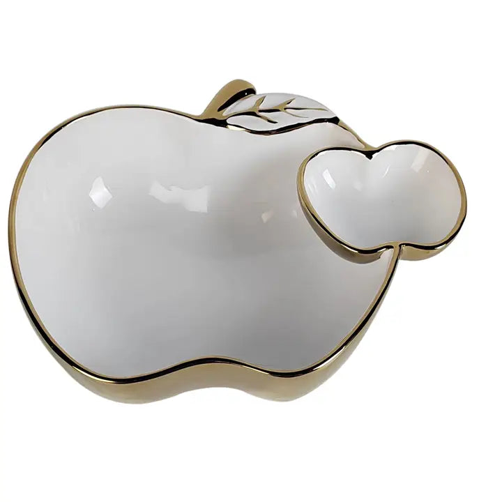 White Porcelain Apple Dish Gold Edged