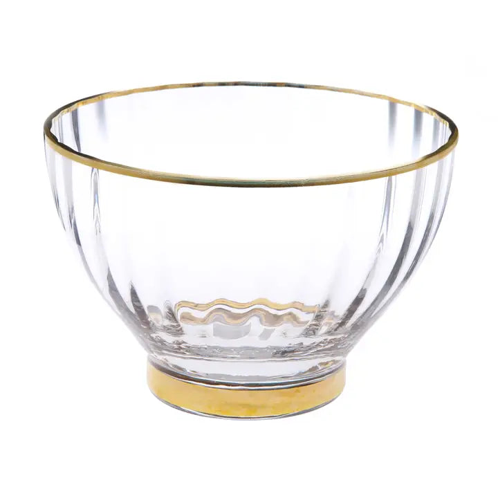 Line Textured Dessert Bowls with Gold Rim and Base Set of 4