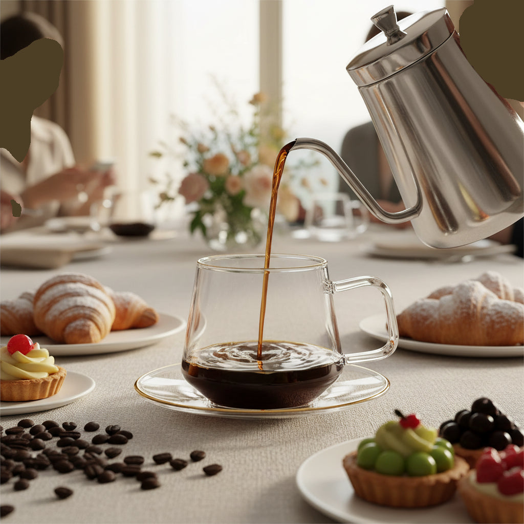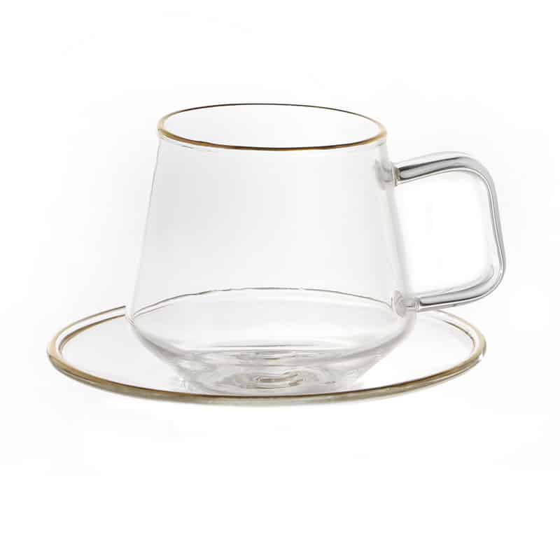 Clear Glass Cup and Saucer Diamond Shaped Base 280ml