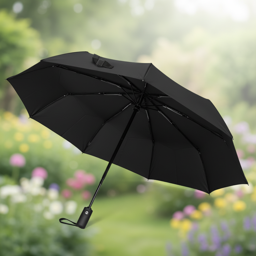 Triple Folding Black Umbrella with Press Button